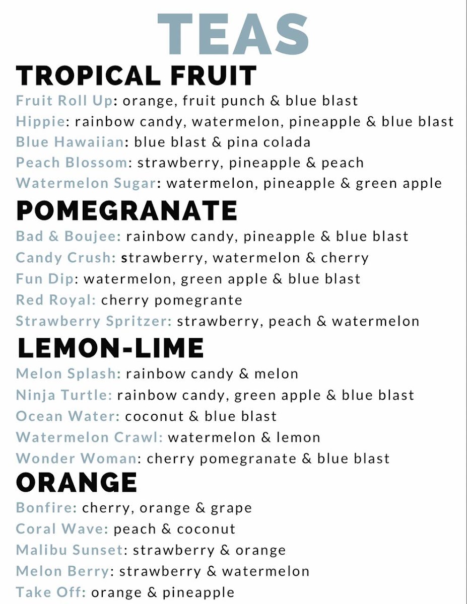 Downtown Nutrition features a diverse menu filled with unique and delicious flavor profiles. From the Tropical Fruit options like the Fruit Roll Up and Blue Hawaiian to the refreshing Lemon-Lime choices like Melon Splash and Ocean Water, there's something for everyone. If you're in the mood for something citrusy, the Orange selections, including Malibu Sunset and C coral Wave, are a delightful treat that awakens the taste buds.